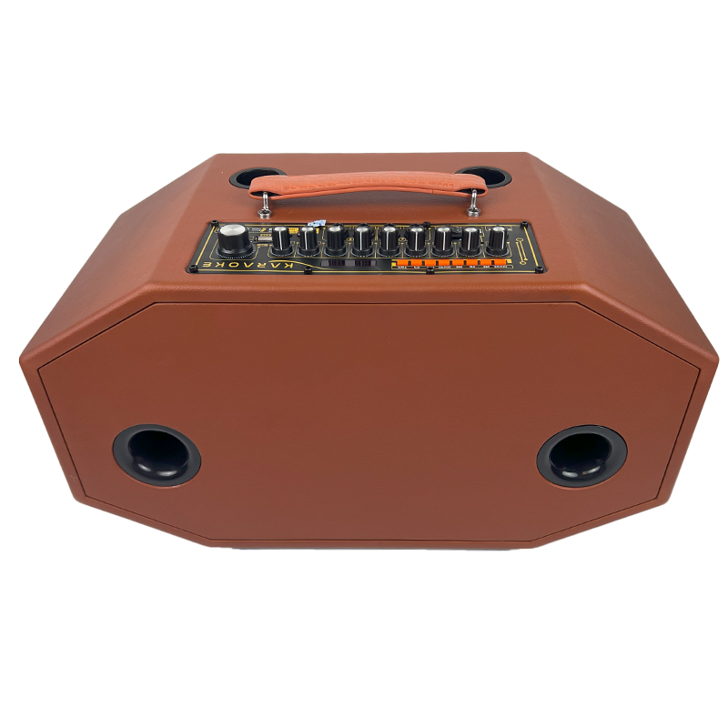 Loa Microtek HD-365 sở hữu thiết kế hình lục giác độc đáo, tạo nên vẻ ngoài ấn tượng và thu hút. Vỏ loa làm bằng gỗ bọc giả da, mang lại cảm giác sang trọng và chắc chắn. Với màu sắc lựa chọn giữa nâu và đỏ, loa không chỉ là thiết bị âm thanh mà còn là một điểm nhấn phong cách cho không gian của bạn. Kích thước vừa phải (52 x 26 x 28.2 cm) và trọng lượng 13.5 kg giúp dễ dàng di chuyển và phù hợp cho cả không gian trong nhà lẫn ngoài trời.